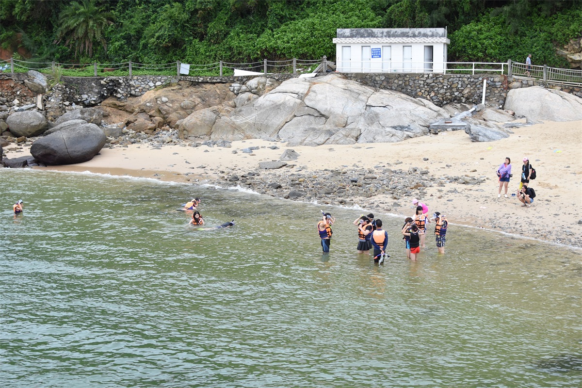 8月19號一大早,微風(fēng)拂面,大家都喜笑顏開,懷著無比激動興奮的心情踏上前往沙扒灣青州島的旅途。手中天藍(lán)色的旗幟,仿佛已感受到大伙兒的陽光與自信,也在空中翩翩起舞。