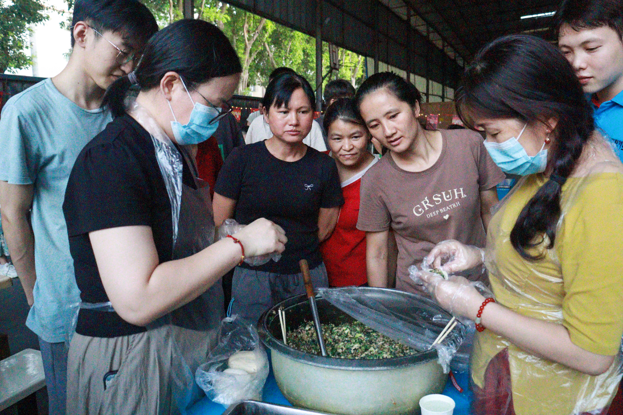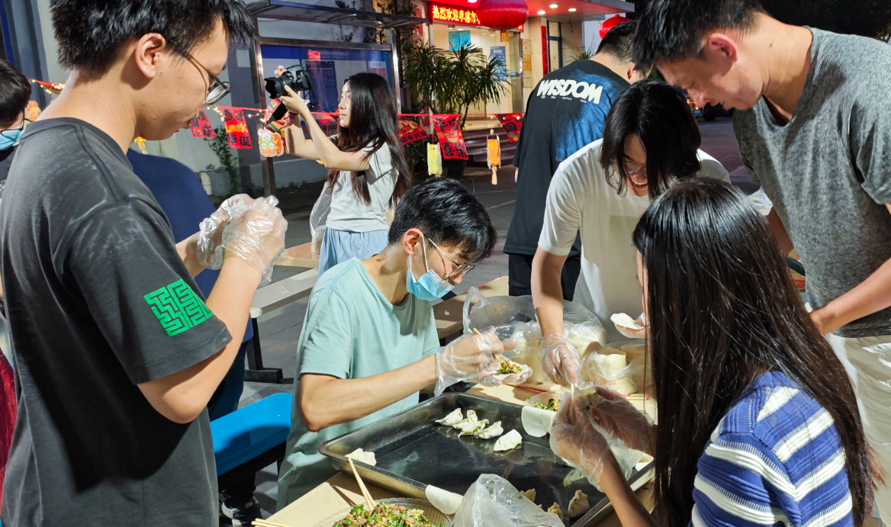 元寶形、月牙形、柳葉形……各式各樣的餃子整齊排列,展現(xiàn)著團隊的創(chuàng)意與活力。小小的餃子,成了串聯(lián)天南地北鄉(xiāng)情與記憶的溫暖紐帶。大家忙碌著、交流著,歡聲笑語不斷,現(xiàn)場氛圍其樂融融。